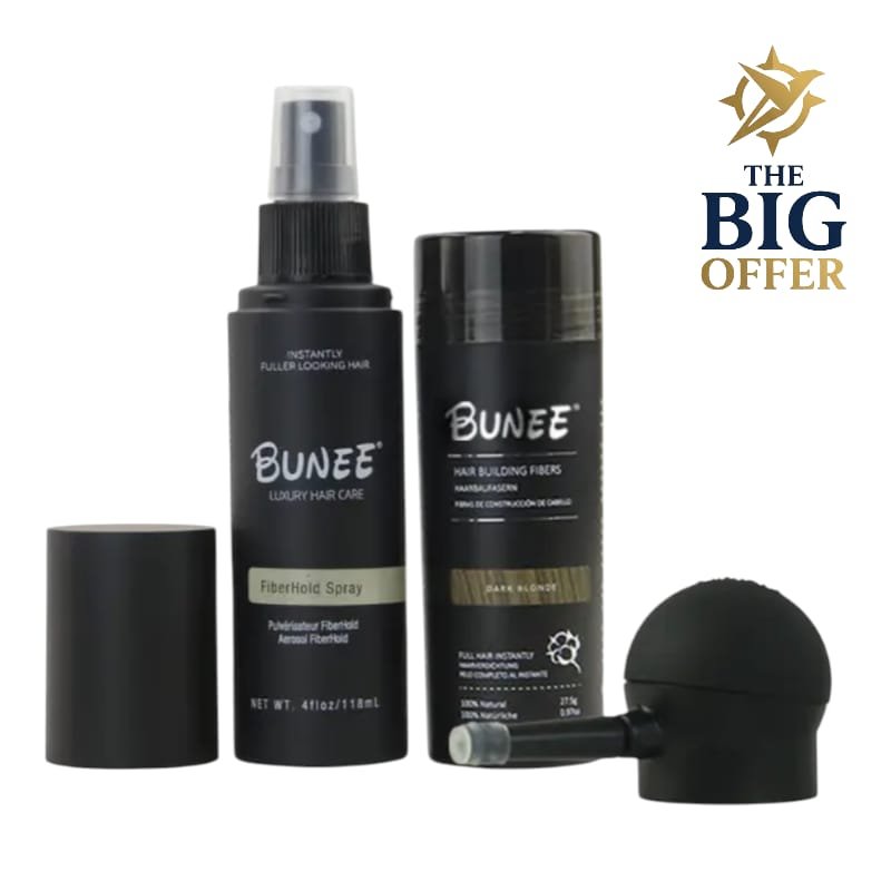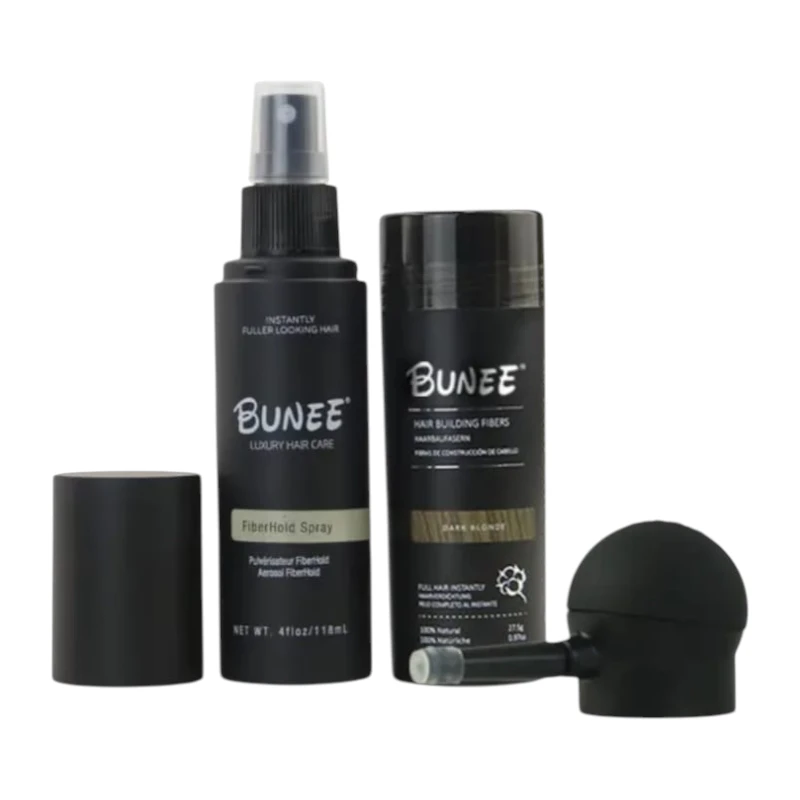 ألياف شعر أسود تُستخدم لتغطية فراغات الشعر ومنح مظهر شعر كثيف وطبيعي خلال ثوانٍ،