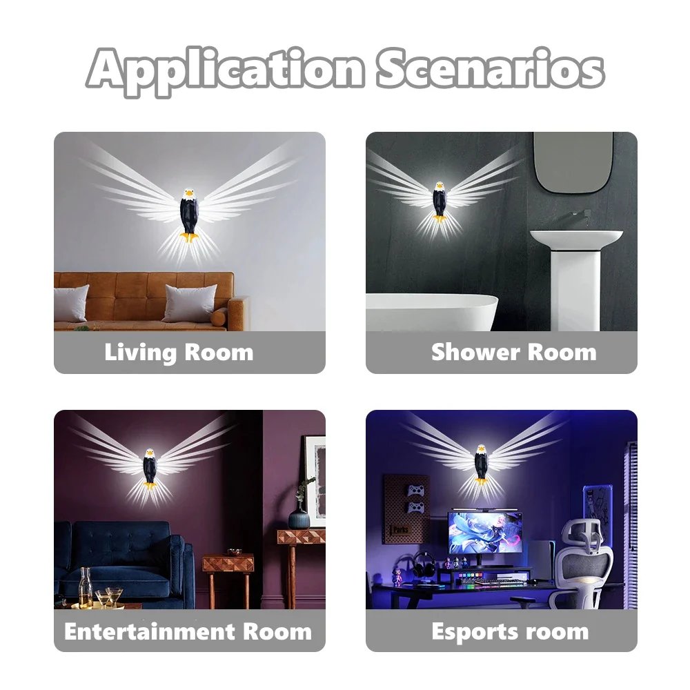 مصباح حائط مهيب على شكل نسر طائر ثلاثي الأبعاد، مصباح حائط LED مع إضاءة محيطية لديكور المنزل