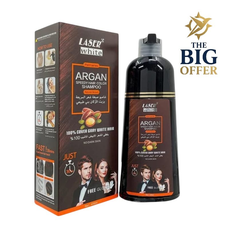 شامبو ARGAN بني غامق هو الحل السريع لتغطية الشعر الأبيض بنسبة 100% خلال 30 ثانية فقط.
